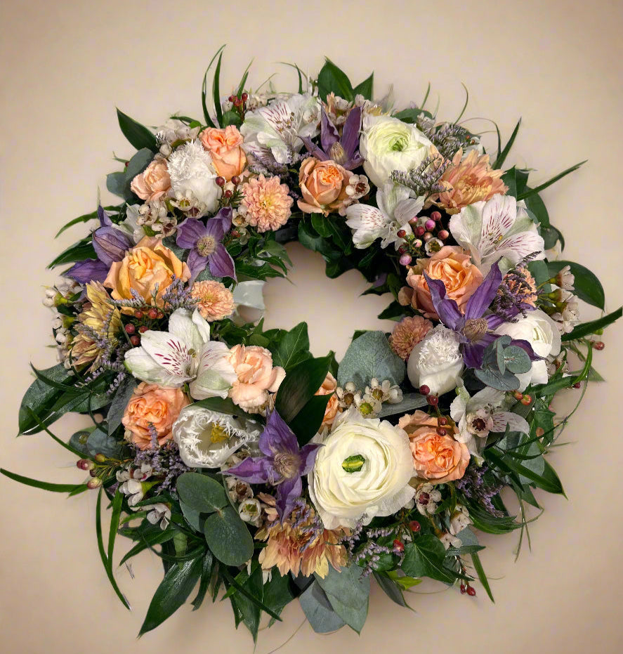A wreath is a beautiful and dignified way to honor and remember a loved one. Our wreaths are tied with care and consist of carefully selected flowers in harmonious colors, adapted to reflect warmth, thoughtfulness and memorability. We will help you create a personalized wreath that conveys what you want to express at the farewell.