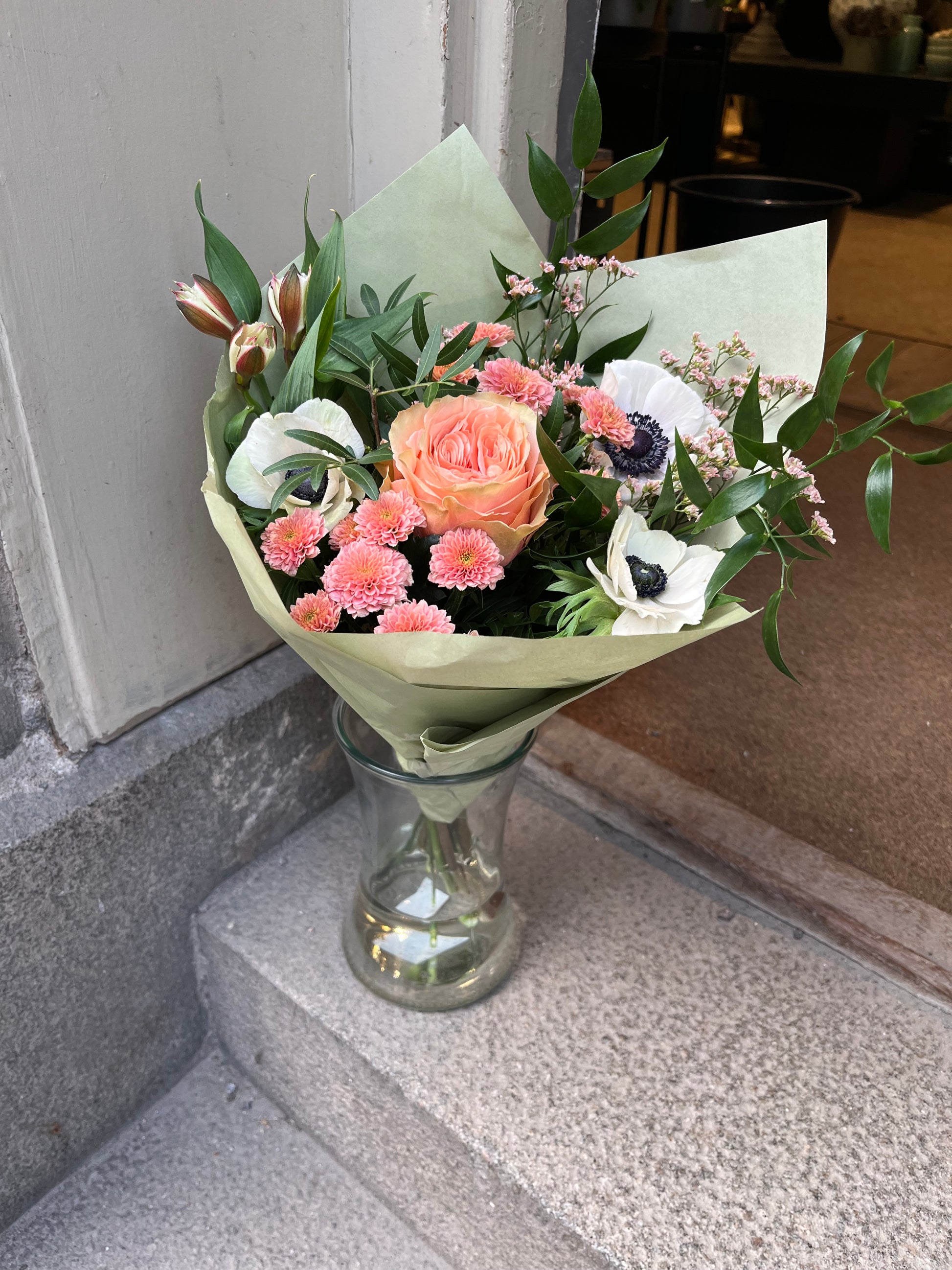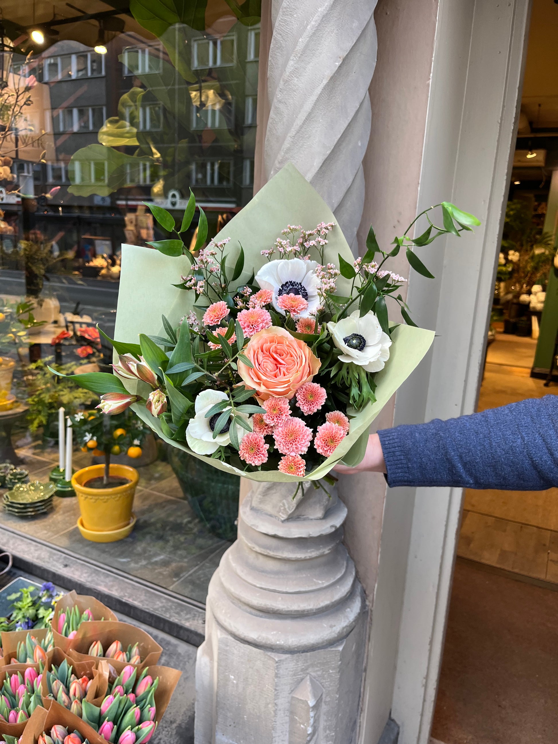 Handbunden i vår butik på Södermalm med säsongens finaste blommor.